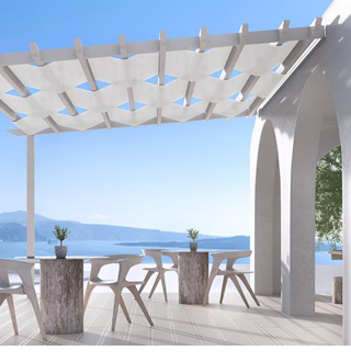 Το σύστημα για προηγμένες βιοκλιματικές πέργκολες SMARTIA PG160P Santorini αποτελεί ίσως το μοναδικό σύστημα πέργκολας που μπορεί να καλύψει σε αυτοστηριζόμενη τυπολογία (χωρίς στήριξη στον τοίχο) μία επιφάνεια έως 50 m2 με μόνο τέσσερις κολόνες στήριξης